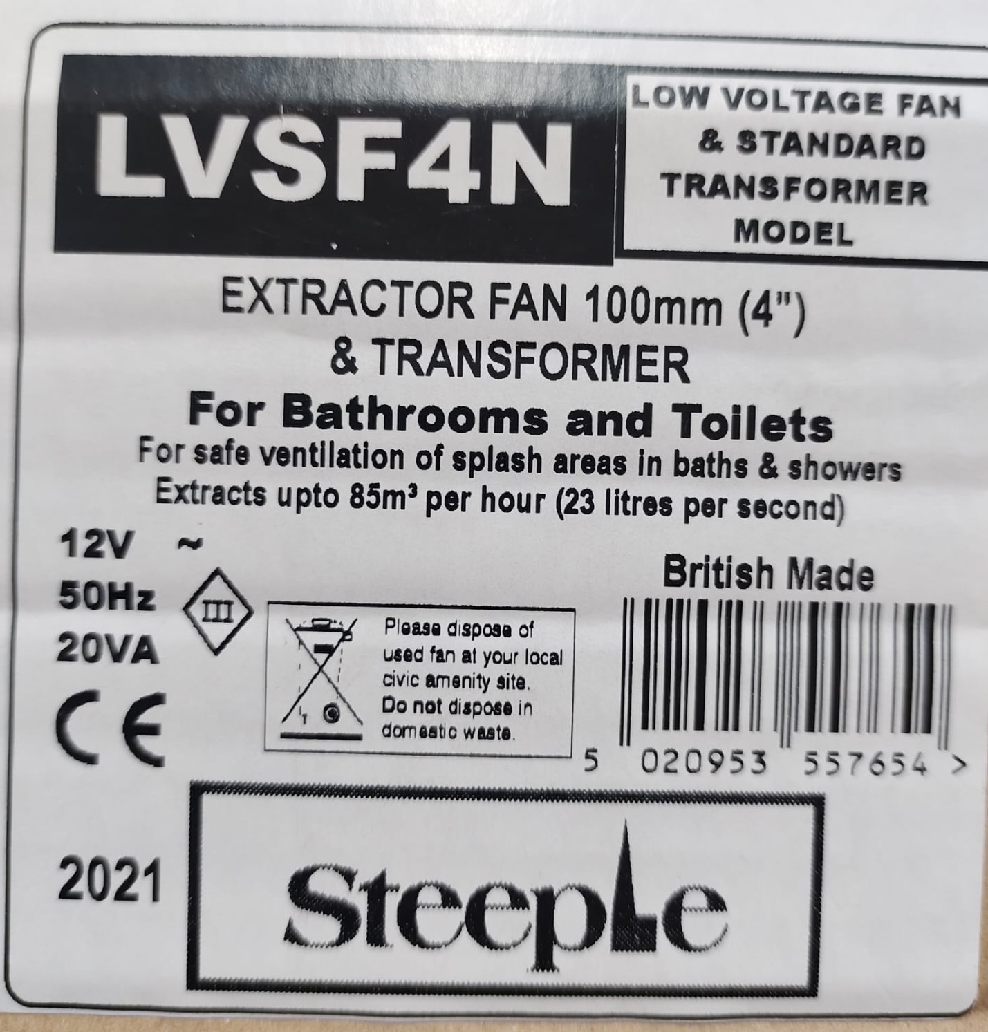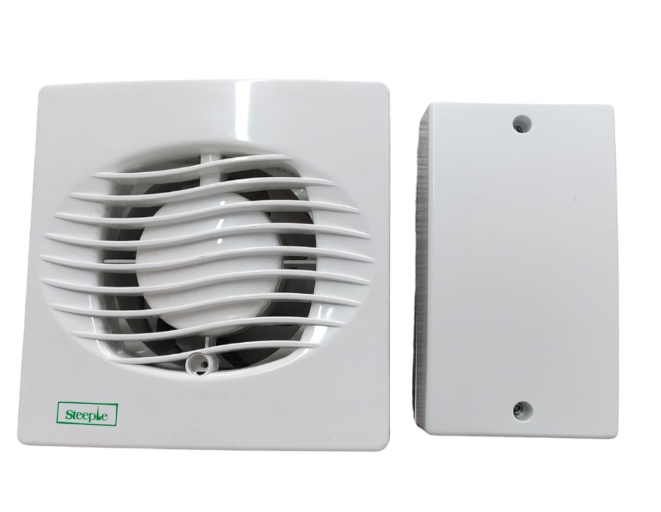 A low voltage fan designed for the totally safe ventilation of toilets, bathrooms and shower rooms.